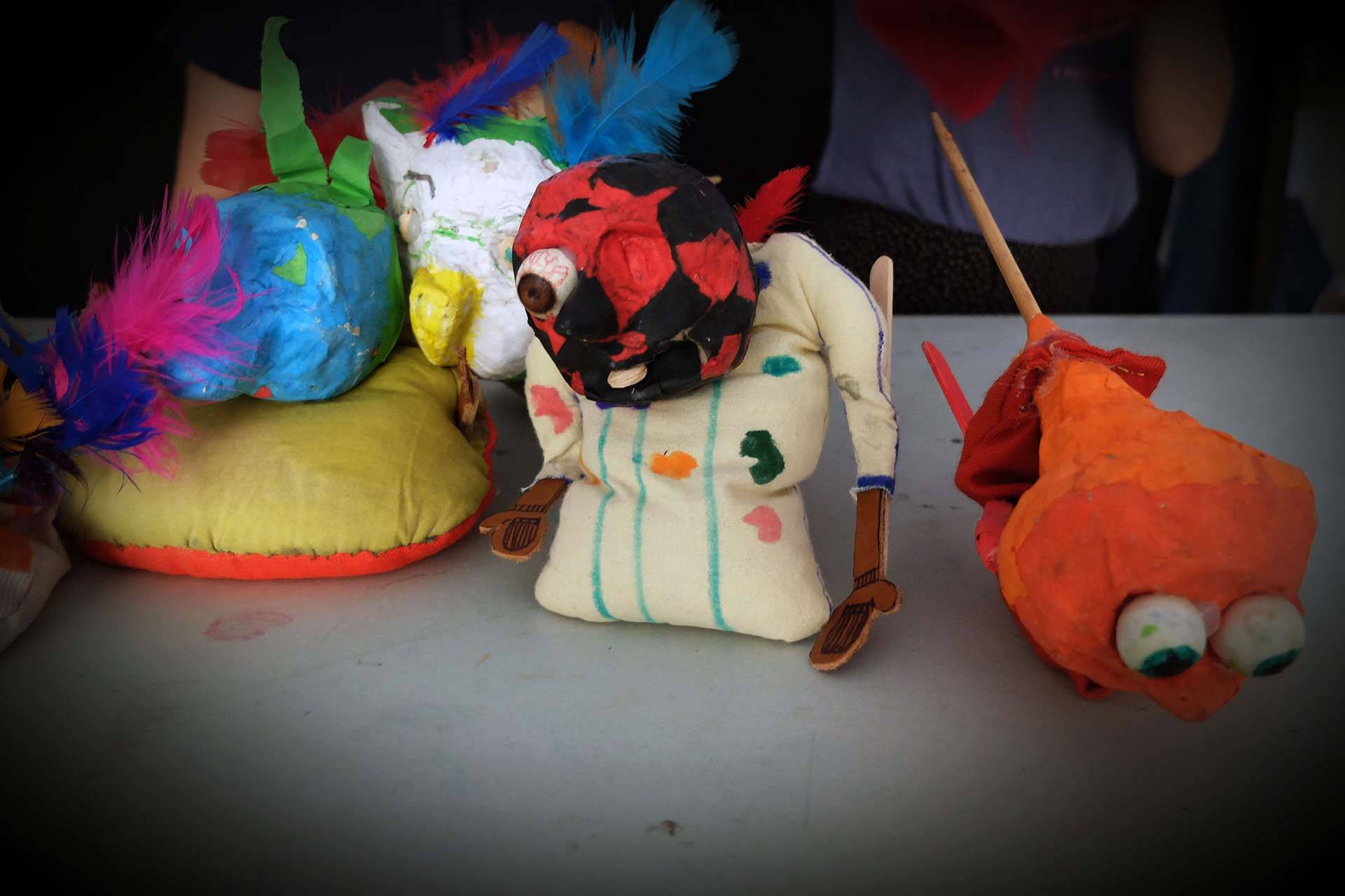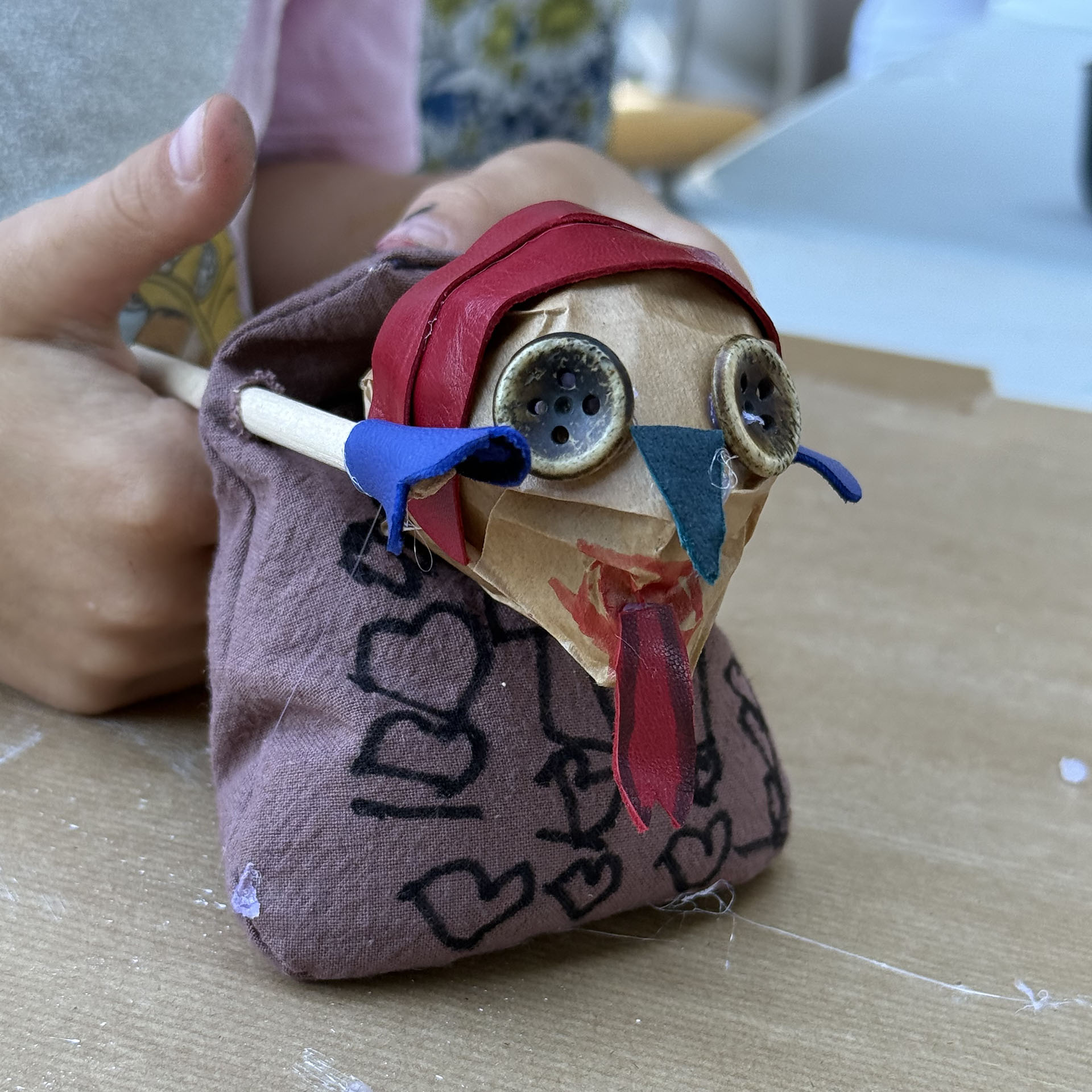 La Fichue compagnie propose des ateliers autour de la marionnette sac, mêlant fabrication et manipulation. L’objectif est de faire découvrir des techniques artisanales simples et accessibles, tout en explorant le jeu et le mouvement à travers la marionnette.